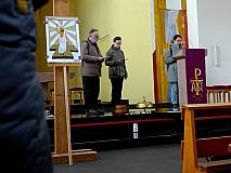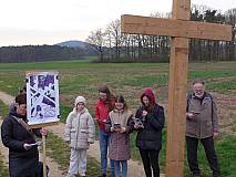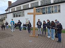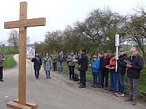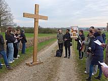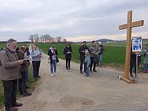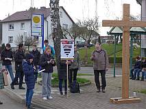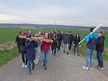 Gemeinsam beteten evangelische und katholische Christen des Pastoralverbunds Hessiches Kegelspiel zu den Heiligen 14 Nothelfern und dem Kirchspiel Mansbach, Eiterfeld und Rasdorf am Freitag vor dem Palmsonntag den ökumenischen Jugendkreuzweg. Trotz des wenig einladenden Wetters hatten sich ca. 100 Teilnehmende eingefunden.