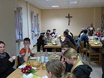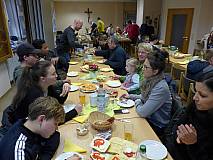 Anschließend waren alle zum Imbiss und kalten und warmen Getränken in das Pfarrheim Steinbach eingeladen. Dort hatten fleißige Hände des Pfarrgemeinderates die Tische einladend gedeckt und für reichlich Schmalzbrote, belegte Käsebrötchen und kleine Brezeln gesorgt. Es bestand die Möglichkeit, sich mit seinen Nachbarn auszutauschen.