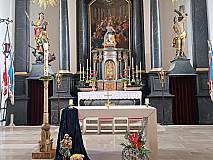 Am Montag, den 27.05.20204 trafen sich viele Kinder in der Kirche St. Georg, um gemeinsam Maria, die Mutter Jesus zu feiern. Maria ist uns ein Vorbild im Glauben, im Vertrauen auf Gott. Wir feiern mit Maria, dass die Blumen blühen und dass alles wächst. Nach einer kurzen Meditation mit Bewegungen hörten wir aus Marias Leben. Im Anschluss begingen wir unsere Wallfahrt zur Grotte auf den Friedhof und begrüßten Maria mit einem Lied. Während den Fürbitten durften die Kinder die Grotte mit ihren mitgebrachten Blumen schmücken. Zum Abschluss erhielten die Kinder als Giveaway ein Marienaufsteller mit Gebet.