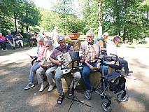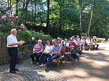 Hünhan(pi) -  Bei bestem Wetter trafen sich 30 Andachtsbesucher des Rhönclubs Eiterfeld und aus Nüst an der Hünhaner Mariengrotte. Unter musikalischer Begleitung sangen und beteten die Besucher mit Msgr. Reinhold Kircher, Hünfeld. Zuvor informierte Vorsitzender Günter Pilz über die Entstehungsgeschichte Mariengrotte. Abschließend erhielten die Andachtsbesucher eine Erinnerungskerze der Mariengrotte.