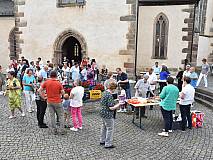 Gemeinde zum Empfang auf den Kirchplatz eingeladen. Bei einem Imbiss und