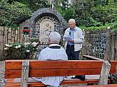 Hünhan. Bei bestem Wetter versammelten sich zahlreiche Gläubige, um die Andacht zum Jahrestag der Grottenneueinweihung im Jahre 2007 mitzufeiern. Pfarer i.R. Gerhard Bug und Pfr. i.R. Reinhold Kircher begleiteten die Andachtstexte. Pfr. Bug als ehemaliger Ortspfarrer dankte allen Gläubigen für die Gebete und das Mitfeiern an der Mariengrotte. Seit 78 Jahren nach der Ersterbauung ist die Mariengrotte nach wie vor ein Ort der Besinnung, Erholung und des Gebetes. Viele Generationen sind der Fürsprache der Muttergottes treu geblieben, so Pfr. Bug. Er dankte dem Förderkereis Mariengrotte für die Instandhaltung der Grottenanlage und für die Organisation von Andachten und Gottesdiensten im Laufe eines Jahres. Die Gittarrengruppe " Einfach so" aus Flieden begleitete sehr einfühlsam mit Liedern und Texten. Vorsitzender Günter Pilz dankte allen Besuchern und Mitwirkenden.