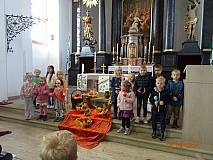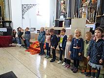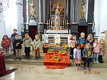 Am Samstag, den 28.09.2024, feierten die Kinder mit ihren Familien den Erntedankgottesdienst. Alle Kinder waren aktiv an der Gestaltung des Festes beteiligt. Mit Liedern und Gedichten brachten sie ihren Dank zum Ausdruck. Besondere Aufgaben hatten die Schulanfänger. Sie trugen ein Gedicht, sowie die Fürbitten vor. Der Schwerpunkt in diesem Jahr lag auf dem Thema „Danke, kleiner Apfel“. Jedes Kind erhielt nach dem Gottesdienst einen gesegneten Apfel.