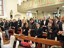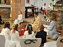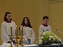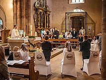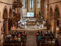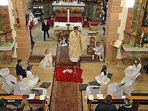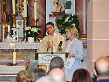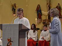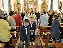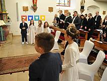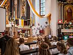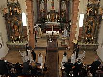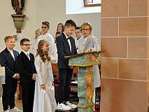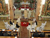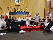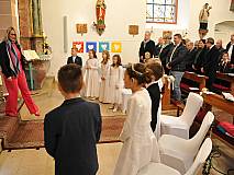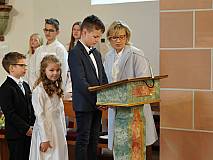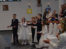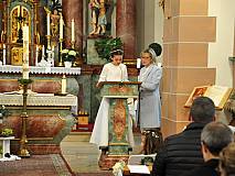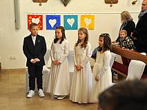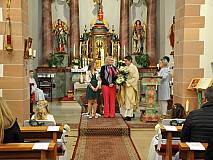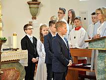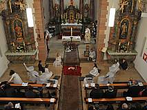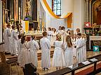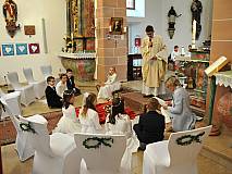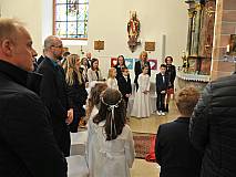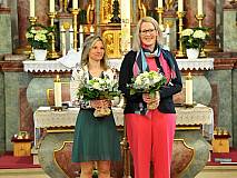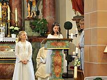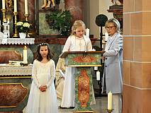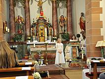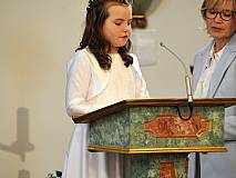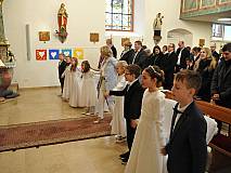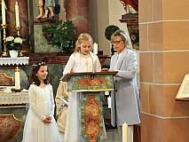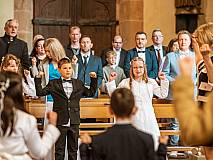 Der Kirchenchor unter der Leitung von Susanne Heiderich umrahmte den Gottesdienst musikalisch. Dagmar und Lena Schröter sangen für die Erstkommunionkinder das Lied "Die schönste Reise" - mit passendem Text zur Erstkommunion. Begleitet wurden die Kinder aus Steinbach, Arzell und Dittlofrod während der Erstkommunionvorbereitung von den Katechetinnen Ute Vogt, Svenja Zentgraf und Victoria Weber.