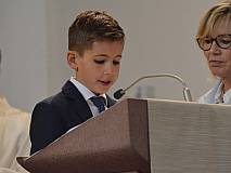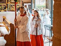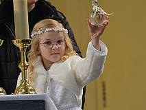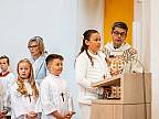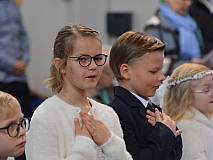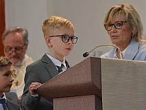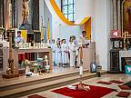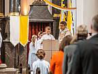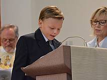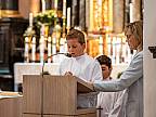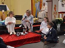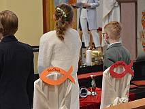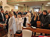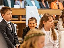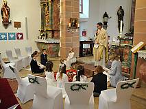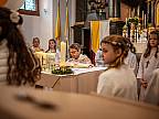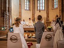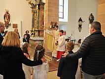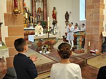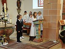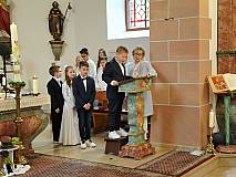 Mit einem Video, das Lukas Quanz erstellt hat, schauten die Kinder und Gäste auf besondere Momente in den vergangenen Monaten der Vorbereitung auf die Erstkommunion zurück. Pfarrer Winfried Vogel zelebrierte den Gottesdienst, unterstützt wurde er von Maria Martina Fischer.