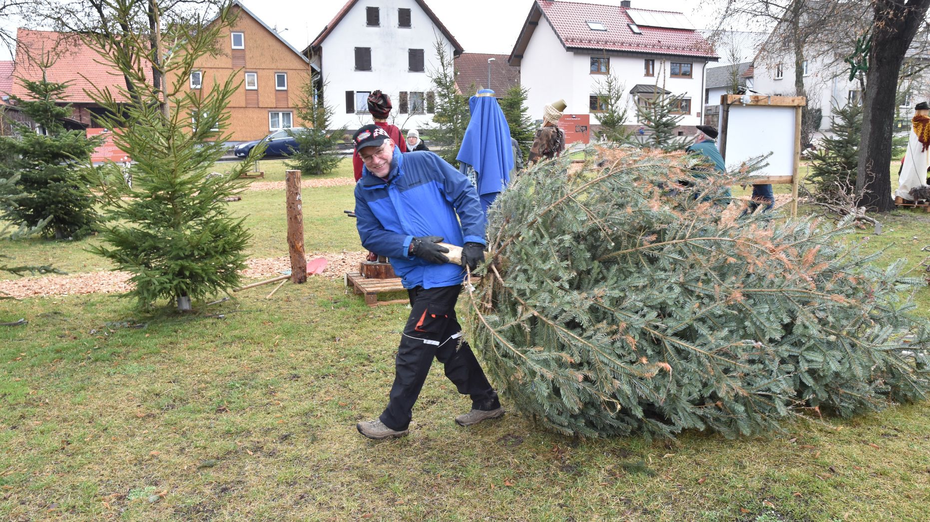 Ganze sechs Stunden hat das 12-köpfige Abbauteam gebraucht, um den Anger wieder in seinen ursprünglichen Zustand zu versetzen. Durch die Unterstützung des Rasdorfer Bauhofs, der auch die Hackschnitzel für den Weg zum Anger gebracht hatte, wurden die Weihnachtsbäume und die Hackschnitzel nach dem Abbau sachgerecht entsorgt.