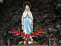 Unsere Lourdes-Grotte wurde im Jahre 1906 von den Brüdern Karl und Ferdinand Schmitt erbaut. Der Platz wurde von den Eheleuten Konrad und Anna Brähler unentgeltlich zur Verfügung gestellt und ist heute Eigentum der Familie Jürgen Klitsch. Die Grotte selbst ist Eigentum der Pfarrgemeinde. Der terassenförmig angelegte Vorplatz, der 1990 erweitert worden ist, gibt auch einer größeren Anzahl von Gläubigen die Möglichkeit zur Anbetung.
