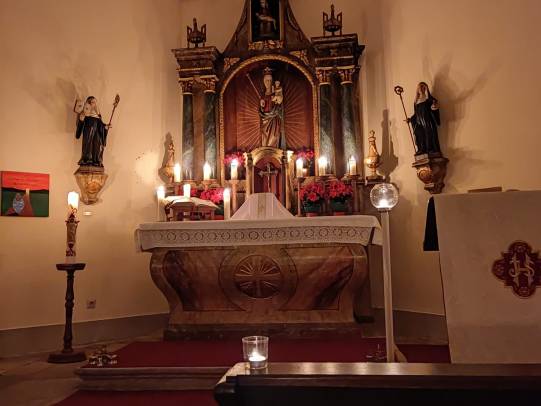 Am vergangenen Samstag feierte Domkapitular Cornelius Roth die Roratemesse in der Schnepfenkapelle. In der nur mit Kerzen erhellten Schnepfenkapelle starteten etwa 25 Gläubige gemeinsam in den ersten Adventssamstag.