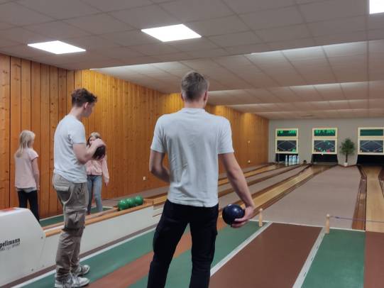 Am vergangenen Freitag zog es die Ministranten auf die Kegelbahn. Über zwanzig gut gelaunte Freunde des gebohnerten Bahnsports machten sich auf den Weg in die Fuldaer Heidelsteinstraße. Dort wurden unterschiedliche Kegelspiele wie beispielsweise: Hausnummern- oder Tannenbaumkegeln gespielt. Dabei kamen Spaß und gute Laune natürlich nicht zu kurz. Neben dem Kegeln gab es auch eine große Speisekarte voller Leckereien, sodass sich der ein oder andere Messdiener auch direkt mit einem kleinen Abendessen versorgte. Nach einigen Runden auf der Kegelbahn war der kurzweilige Abend auch schon wieder zu Ende und es ging mithilfe vieler Messdienereltern wieder zurück nach Bimbach.