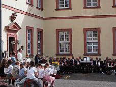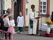 Der Sonntag stand unter der Überschrift „Begegnen – Essen – Trinken – Feiern“. Das Fest startete um 11:00 Uhr mit einem Festgottesdienst auf dem Propsteiplatz mit Diakon Ewald Vogel, dem Gesangverein Harmonie Blankenau unter Leitung von Margarita Bechler, der Kindersinggruppe unter Leitung von Regina Vogel, Stephanie Faust und Stephanie Bickert sowie Domkapellmeister Franz-Peter Huber als Kantor.