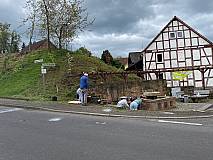 Aus Sicherheitsgründen mussten in jüngster Zeit beim Dorfbrunnen Bäume gefällt werden, was zu einem trostlosen Anblick des Areals führte. Eine Aktionsgruppe hat daher den Hang neu mit Sträuchern angelegt, vor die Sandsteinmauer eine Kletterrose sowie einen wilden Wein gepflanzt. Die Pflanzen wurden gesponsert u.a. von der Gärtnerei Blumen Hahn in Großenlüder und der Baumschule Büchsel in Bimbach, so dass der Gemeinde keine Kosten entstanden sind. Das Unkraut/die Wildkräuter zwischen den Pflastersteinen wurden umweltfreundlich ganz ohne Chemie und Gasbrenner rein mechanisch entfernt. Der Dorfbrunnen hat mit dieser Aktion eine erhebliche Aufwertung erlangt und wird, wenn alles wieder grünt und blüht, vielleicht wieder mal ein Platz der Begegnung.