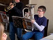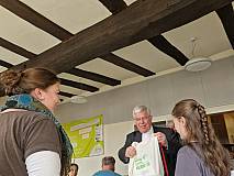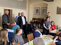 Weihbischof Karlheinz Diez, Bürgermeister Peter Malolepszy und Ortsvorsteher Hubert Krah statteten den Jugendlichen einen Besuch ab, informierten sich über die Projekte und bedankten sich für den vorbildlichen Einsatz für das Gemeinwohl. Nach einem kurzen Impuls von Weihbischof Karlheinz Diez, trugen die Jugendlichen passend zu den Aktionstagen ihre Fürbitten vor. Leo Faulstich (Trompete) und Jannis Allgeyer (Tenorhorn) begeisterten die Zuhörerinnen und Zuhörer mit dem Lied „Ode an die Freude“.