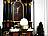 Die Altäre waren schon am Tag vorher vom Passionsspielverein, den Kommunionfamilien, der Bibelgruppe, der DJK und dem Pfarrgemeinderat vorbereitet worden. Als die Entscheidung getroffen war, dass wir in diesem Jahr das Fronleichnamsfest „Indoor“ feiern werden, wurden die vorbereiteten Gestecke, Blumen und Materialen in die Kirche gebracht. Der erste Altar war am Geburtsaltar, der zweite bei der Mutter Gottes, der dritte bei der Pieta und der vierte Altar am Kreuzigungsaltar.