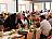 Dass innerhalb der nun zusammengehörenden Kirchorte schon Verbindungen geknüpt und sich ausgetauscht wurde, zeigte sich nicht nur an den angeregten Gesprächen der Besucherinnen und Besucher an den Tischen oder auch vor der Landkarte mit dem „Kirchen-Puzzle“, sondern auch daran, dass sich aus allen Orten Menschen bereitfanden, den ein oder anderen Dienst, z.B. in der Küche oder an der Theke, zu übernehmen. Auch der von Markus Otterbein organisierte Verkaufsstand mit fair gehandelten Produkten bot Gelegenheit zum „Schnacken und Shoppen“. Am frühen Nachmittag bat Pfr. Hartel dann noch einmal alle ehemaligen Pfarrgemeinde- und Verwaltungsräte aus den Kirchorten auf die Bühne, um ihnen für ihr Engagement zu danken. Als kleines Zeichen der Wertschätzung wurden sie mit einem Foto ihrer jeweiligen Kirche beschenkt.