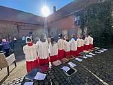 In diesem Rahmen wurden 12 neue Messdiener herzlich in der Gemeinde willkommen geheißen. die Gruppenleiterin Lisa Giese bat Pfarrer Latsch um den Segen und die Beauftragungen der Ministranten für ihren Dienst in der Kirche.