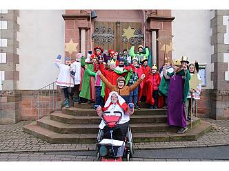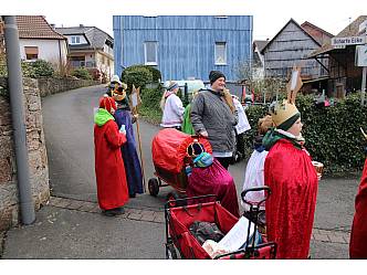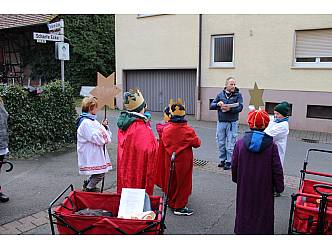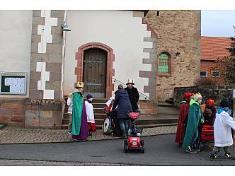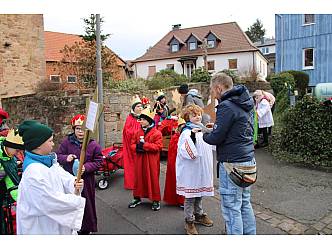 Fünf Sternsinger-Gruppen machten sich anschließend auf den Weg um den Menschen in Ihren Häusern den Segen Gottes zu bringen und um Spenden zu sammeln für Kinder in Amazonien. Die Kinder waren mit Elan und Spaß bei der Sache. Nach Pizza und Nachtisch im Pfarrhaus starteten die Gruppen zur 2. Runde. Nachdem die kleinen Sternsinger zu den Aussiedlerhöfen, zum Kleinheiligkreuz, der Hessenmühle und zum Schlagberghof gefahren wurden endete die Aktion gegen 16 Uhr.