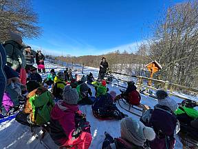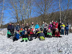 Am Ende des Vormittags wurden die Winterklamotten wieder angezogen und die Schlitten und die Poporutscher eingepackt. Bei strahlendem Sonnenschein ging es auf den Schlittenhang von Kleinsassen. Dort verbrachten die Kinder zwei glückliche Stunden, voller Winterspass. Auf dem Rückweg ins Ludwig- Wolker- Haus machte die Gruppe Station an einem kleinen Wegekreuz. Hier las unser Gemeindereferent einige Besinnungsfragen vor, welche den Kindern abschließend dabei helfen sollten, ihre Beichte im Anschluss gut ablegen zu können.