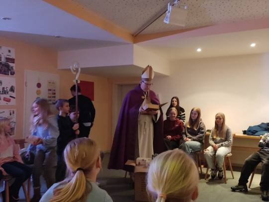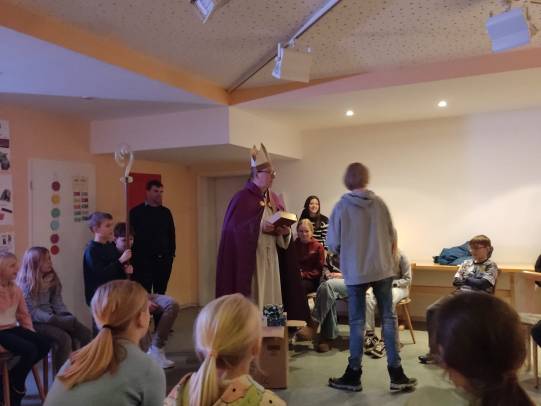Der Nikolaus besucht die Bimbacher Messdiener auf ihrer Nikolausfeier