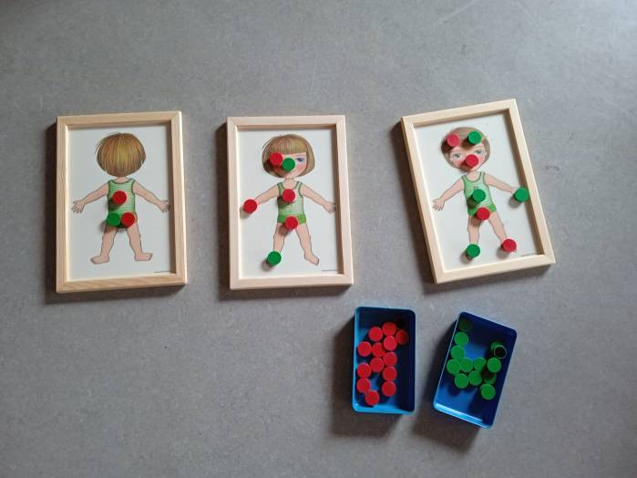 In Woche 2 ging es um das Thema „Berührungen“. Die Kinder haben herausgefunden, dass es Berührungen gibt, die sich gut anfühlen, andere fühlen sich schlecht oder komisch an. Das kann auch von Kind zu Kind unterschiedlich sein. Berührungen von jemandem den wir kennen und mögen, können angenehm sein, aber bei einer fremden Person möchten wir nicht, dass sie uns berührt. Die Kinder haben ein Körperbild angemalt und darauf mit roten und grünen Punkten gekennzeichnet, wo sie gerne berührt werden und wo sie nicht berührt werden wollen.