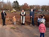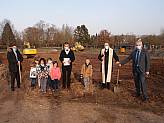 „Die beiden symbolischen Spaten mögen heute daran erinnern, dass das gemeinsame Schaffen von Kirchengemeinde und Kommune zum Wohl unserer Kinder im Vordergrund steht! Als verlässliche Partner sind wir dies unserer nachwachsenden Generation schuldig!“, so Dechant Andreas bei der Segnung des Grundstücks und beim gemeinsamen Gebet um gutes Gelingen der Baumaßnahme. Besonders sprach er die anwesenden Kinder mit Ihren Eltern und die Erzieherinnen der Einrichtung mit Leiterin Sieglinde Mayer an. Das von Kindergartenkind Ben herbeigebrachte Weihwasser war Zeichen des Glaubens und des Lebens unter dem Schutz Gottes.