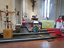 Auftakt der 72 Stunden Aktion in Mariae Namen mit Bischof Michael Gerber. Aufgabe: baut ein großes Kreuz aus vielen kleinen, alten Kreuzen aus unseren Kirchorten. Es soll zeigen: wir sind vielfältig und trotzdem eins!